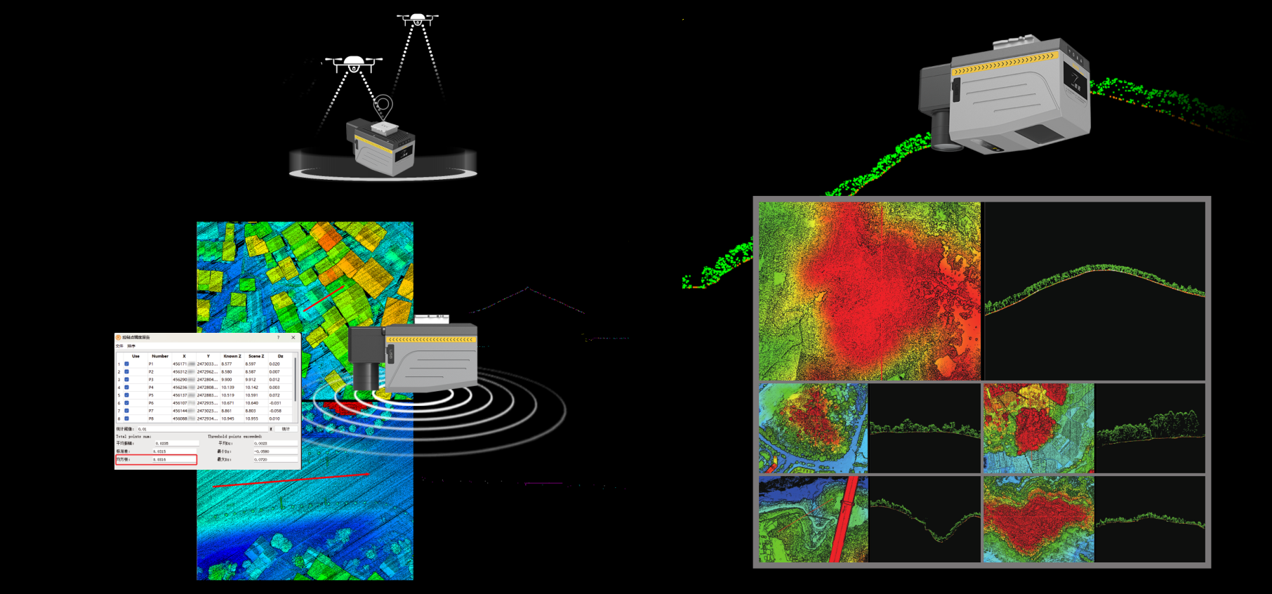 It is suitable for complex terrain mapping with large-area blocks, long-distance strips, and large terrain undulations. It meets the production accuracy requirements of DEM/DOM/DSM/DLG results of various scales such as 1:500/1:1000/1:2000, and has high efficiency and high precision operation characteristics.