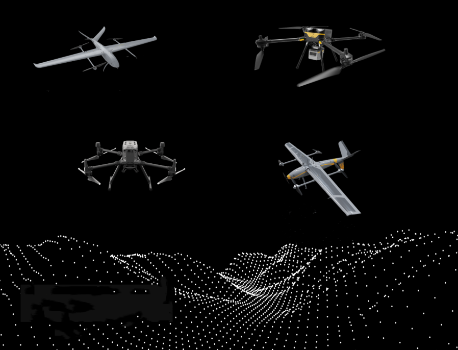 The use of multi-rotor drones or vertical take-off and landing fixed-wing drones equipped with laser radar mobile measurement systems can save costs while ensuring efficiency and accuracy, and provide a variety of drone platform options with a flight time of 40min-120min, which can be flexibly selected according to the scale of the survey area and project accuracy requirements.