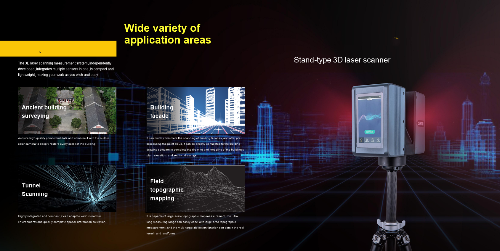 With a maximum scanning range of 1500 meters, the SP1500 is ideal for large-scale site mapping, terrain modeling, and other extensive surveying applications. It effortlessly handles vast areas, reducing the need for multiple scanning setups.