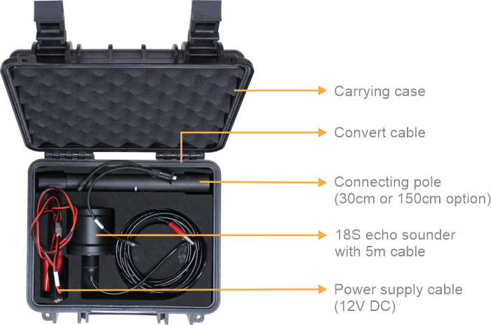 Mini-Size Echo Sounder-18S echo sounder is mini-size echo sounder, it can use with EchoSounder and Hysurvey software. Totally 18S is only 2 KG weight, rugged and simple design, optional 30cm and 150cm survey pole which is easily tide at the boat. Automatic echo parameters adjustment function is very suitable for hydrographic survey, and also can combine with USV solution.