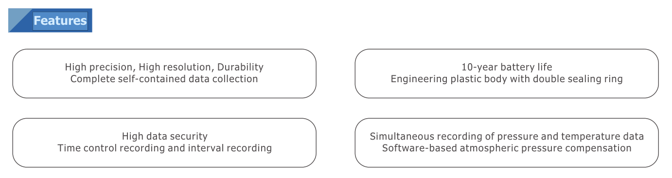●Simultaneous recording of pressure and temperature data software-based atmospheric pressure compensation.